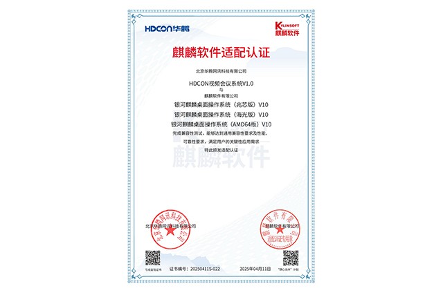 在國家新一代自主安全計算系統集群及長沙國家網絡安全產業園區的戰略引領下,北京華騰網訊科技有限公司迎來重要里程碑——華騰HDCON視頻會議系統、多點控制單元系統順利通過信創產業協同適配中心嚴格認證,與銀河麒麟操作系統(兆芯/海光版)V10完成全棧適配,